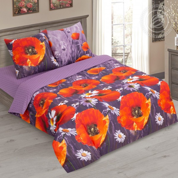 Великолепная композиция «Алые маки» подарит чудесные сны о солнечном лете с его живописными полями и лугами, легким дуновением ветерка, цветочными ароматами и яркими красками. Постельное белье из бязи выполнено в модных цветовых решениях и с необычайно красивыми деталями. Оригинальный принт с маками и ромашками – образ радости, очарования и прекрасных впечатлений.
